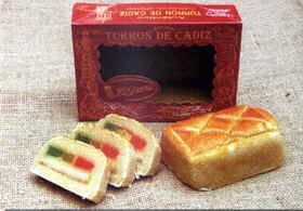 El turrón de Cádiz es, junto con los pestiños, el dulce mas emblemático de la Navidad gaditana, al igual que lo son los currusquillos de canela en Carnaval. Se trata de un dulce de mazapán relleno con trozos de fruta y cabello de ángel con una forma especial que recuerda un cofre. El origen de este tradicional dulce gaditano es confuso y poco conocido y, de hecho, está a caballo entre la historia y la leyenda. Que duda cabe que al ser un dulce de almendra tiene un ancestral origen andalusí, pero el Turrón de Cádiz tal como es actualmente, con su forma y componentes, es mucho mas reciente.