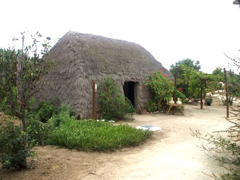 Esta casa tenía un techo de pasto, cañas y en ocasiones algas, con una pequeña puerta y un ventanuco como ventilación. Dentro tenían dos habitaciones separadas con una tela de saco o estera encalada, una para el matrimonio y otra para los hijos. En los alrededores cercanos a la casa se encontraban el pozo y el "paraero", chamizo donde se cocinaba y se comía cuando el clima acompañaba.