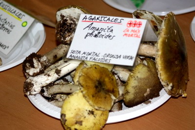 Tras las explicaciones de los entendidos y ante un guiso exquisito de carne de ibérico y Chantarelas, tuve la oportunidad con ellos de resolver algunas de las dudas generadas por las advertencias continuas sobre el consumo de la seta silvestre, el mas experimentado de los micólogos tenía muy clara su contestación, si te gusta y quieres introducirte con garantías en este mundillo “aprende bien las características de una especie que se de abundantemente en tu zona, cuales de las tóxicas pueden parecerse y recógelas en el campo acompañado de alguien que las conozca de verdad y te aclare posibles errores antes de comerlas, las demás déjalas para alguien que las domine, después de haber hecho esto varias veces, aprende sobre otra y haz lo mismo”. Existe una máxima que nos evitará muchos problemas y que la siguen a rajatabla los recolectores más experimentados, ante la mínima duda debe desecharse el fruto en cuestión. A pesar de todas estas precauciones, todos los años se producen intoxicaciones y muertes por consumo de setas, por lo que lo más seguro es consumir setas cultivadas o silvestres recogidas, inspeccionadas y vendidas por expertos.