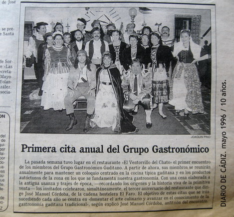 -Abril 1996: Con motivo del X Aniversario de la constitución del GGG coincidente con el III Aniversario de la dirección del Ventorrillo por José M. Córdoba (Grupo El Faro), se celebró una cena elaborada a la antigua usanza, época constitucional, con trajes de época de estilo goyesco. De dicha forma se recordaban los orígenes y la historia viva del celebrado Restaurante, coincidiendo con el objetivo del Grupo centrado en “fomentar el arte culinario y avanzar en el conocimiento y difusión de la gastronomía gaditana tradicional”. .