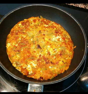 Se sirve como una tortilla de patatas.
