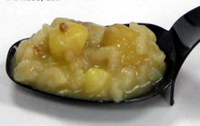 Rehogar el arroz con las castañas en este aceite, luego mojar con agua caliente e ir removiendo, conforme absorba el agua ir poniendo mas, sin parar de mover, añadir las especias. Debe quedar cremoso, cuando esté tierno poner la miel y mezclar bien a punto de sal.