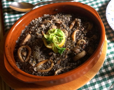 Mientras, pochamos la cebolla, el ajo y los calamares.