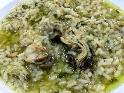 Unos 5 minutos antes de apartar añadir los ostiones enteros y unas hebras de azafrán, rectificar de sal.