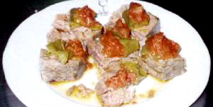 Una vez frió, cortar y encima poner los tomates, pimientos y el jugo del mismo.