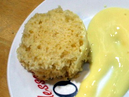 Poner en el vaso batidor con las medidas exactas, el turrón, las yemas y claras de huevo, el azúcar y la harina, batir con el brazo mecánico hasta dejar muy fino, colar. Poner la mezcla en un sifón de ½ litro con una carga de gas (NO2, si sifón de un litro dos cargas) y al frigorífico 2 horas. Agitar con la boca del sifón hacia abajo enérgicamente. Hacer varios cortes pequeños en la base de los vasos con una tijera y llenarlos por debajo de la mitad con la espuma. De uno en uno, poner cada vaso 45 segundos a máxima potencia en el microondas. Dejar reposar los vasos con su contenido boca abajo 10 minutos. Sacar el bizcocho con la ayuda de un cuchillo. Poner en el microondas el chocolate con la mantequilla y el café 2 minutos al máximo, mover bien con una cuchara y poner encima del bizcocho. Adornar con un poco de turrón picado.
