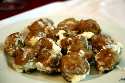 Cuando el aceite esté templado, se hacen bolitas con la ayuda de dos cucharillas y se echan a la sartén. Las bolas se irán inflando poco a poco y dándose la vuelta solas, aunque normalmente hay que ayudarlas un poco, porque conforme se inflan van perdiendo la esfericidad, salvo que seamos muy diestros con las cucharillas.