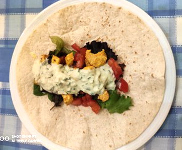 Comida, cena o aperitivo, de preparación rápida y sencilla. El burrito mejicano, se diferencia de la fajita y el taco, porque se usa tortita de trigo y se cierra por uno de los extremos. También usaremos una salsa de yogurt griego y pepino (tsatsiky), marinaremos el pollo con curry indio, por último la verdura y aliño con cosas de Cádiz, como veis una vuelta al mundo de sabores.