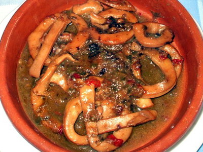 - 1 calamar mediano limpio y troceado (en torno a 500 gr. en sucio)