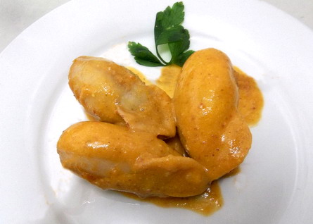 Preparar aparte una salsa con caldo de pescado, ajos machacados, un vaso de aceite, unas cucharadas de salsa de tomate y un buen chorro de vino manzanilla.
