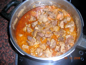 - Para el guiso: 2-3 dientes de ajo, 2 puerros, 1-2 zanahorias, 1 pimiento rojo, 1 tomate maduro, 1 copa de Brandy jerezano, 2 cucharadas de Harina, 2 cucharadas de miel, 4 clavos, nuez moscada, aceite de oliva virgen de la Sierra de Cádiz y sal.
