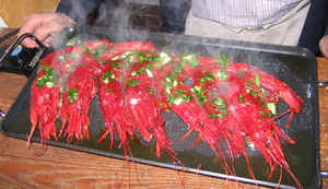 Enjuagar los carabineros, echarles un poco de sal por encima y ponerlos a la plancha, bien caliente.