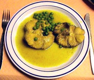 En una cazuela se coloca el cazón, lo cubrimos con el majado, le agregamos los guisantes y un poco de agua, lo tenemos hirviendo unos 10 minutos.
