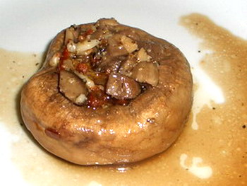 Ponemos la picada en el interior de los champiñones, los colocamos en una sartén al fuego medio con el aceite y tapamos unos 10 minutos.