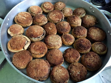 Sellarlos con pan rallado y freírlos, primero por la parte del sellado y después del revés.