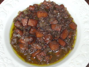 Hacer un refrito con los ajos, la cebolla y el pimiento, todo muy picado.