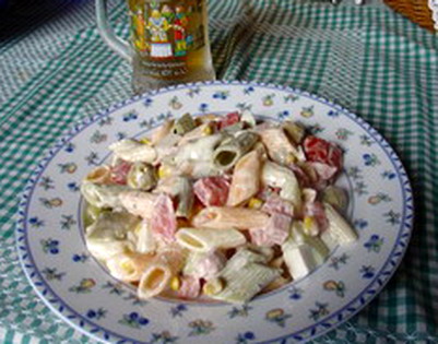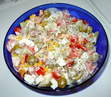 - Pasta para ensalada. Plumas con vegetales