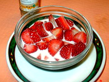 Limpiar las fresas, quitar partes verdes y trocear. Añadir la leche, hasta cubrirlas, y la canela y el azúcar a su gusto. Remover para que la canela y el azúcar se disuelvan y dejar enfriar en frigorífico