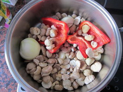 Remojar castañas y frijoles, en abundante agua fría durante unas 24 horas.