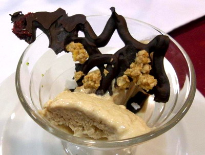 Confitamos la chantarela con una cucharada de aceite de oliva, media vaina de vainilla, una pizca de pimienta y las cucharadas de azúcar. Dejar enfriar. Batir con el brazo mecánico, mezclar con el yogurt y congelar.