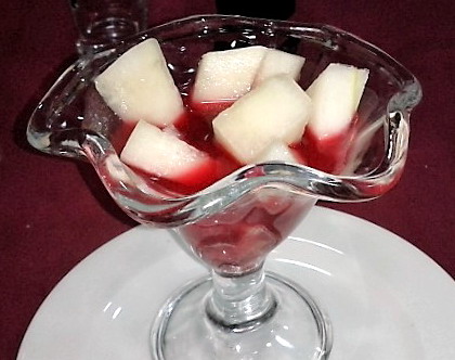 Tres de las propiedades de la cocina al vacío en frío, son la compactación (posibilidad de comprimir alimentos colocados en capas para producir terrinas), la impregnación (posibilidad de integrar dentro de un alimento un líquido) y la sobrecocción (cocer a baja temperatura una fruta hasta licuarla sin añadir agua, conservando todo su sabor). Este postre se prepara con las dos últimas técnicas. Podemos elaborarlo sin vacío, aunque su sabor perderá bastante.