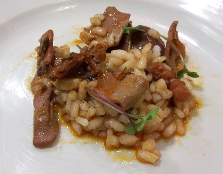 Limpiamos las luas y las troceamos, la colocamos en una sartén honda, y le agregamos los ajos pelados y laminados, las especies machacadas con una pizca de sal, y el pimentón.