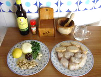 3.- En unacazuela con un poco de aceite ponemos el rape y le cubrimos con elmajado a fuego medio, añadiendo un poco de agua si fuese preciso. En menos de 15minutos estará listo. Este es el momento de añadir la ralladura dela cáscara de limón.