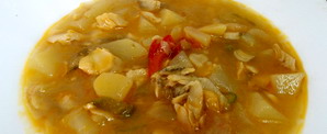 Guiso de papas con pez cochino. |