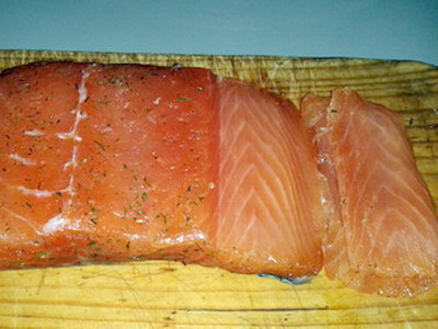 - 1,5 Kg aprox. de salmón, en dos lomos limpios de espinas (aconsejable ventrecha): congelar tras su compra y descongelar lentamente, 24 h antes.