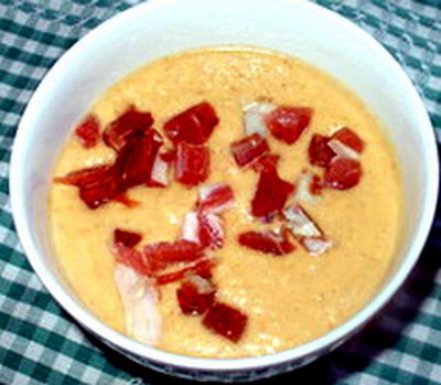 - Lo serviremos cuando esté bien frío acompañado de taquitos de jamón, de gambas cocidas o anchoas picadas.