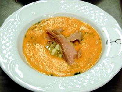 Presentar el plato con la sopa fría de tomate en una jarrita aparte.