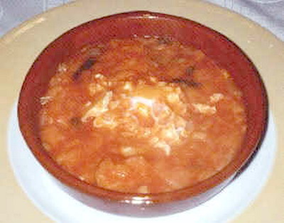 En algunos pueblos de la costa gaditana le añaden gambas o langostinos pelados, en el último hervor.