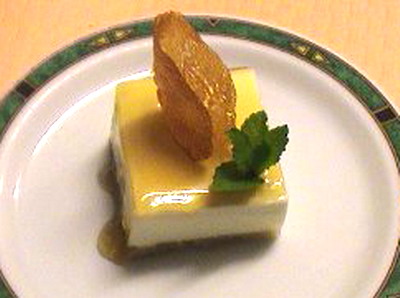 Mezclarle la cuajada y el queso y llevar sin dejar de mover a 83º y verter en el molde previamente forrado con el bizcocho calado. Enfriar.