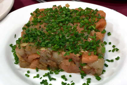 Cortar el salmón ahumado en taquitos de 1 centímetro.