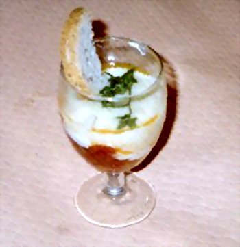 Preparar en una copa, al fondo una buena cucharada de pimientos salteados, después el huevo roto sin mezclar con la capa de abajo, para terminar un par de cucharadas de puré de patatas y cebolla. Adornar con un poco de pimentón picante y el pico largo u otro crujiente que se os ocurra.