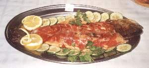 Lavar y vaciar bien las truchas, una vez limpias se rellenan cada una de ellas con una loncha de jamón y posteriormente se sazonan con pimienta y sal. Se cocinan a la plancha y una vez que estén en su punto se decoran con otra loncha de jamón en cada trucha.